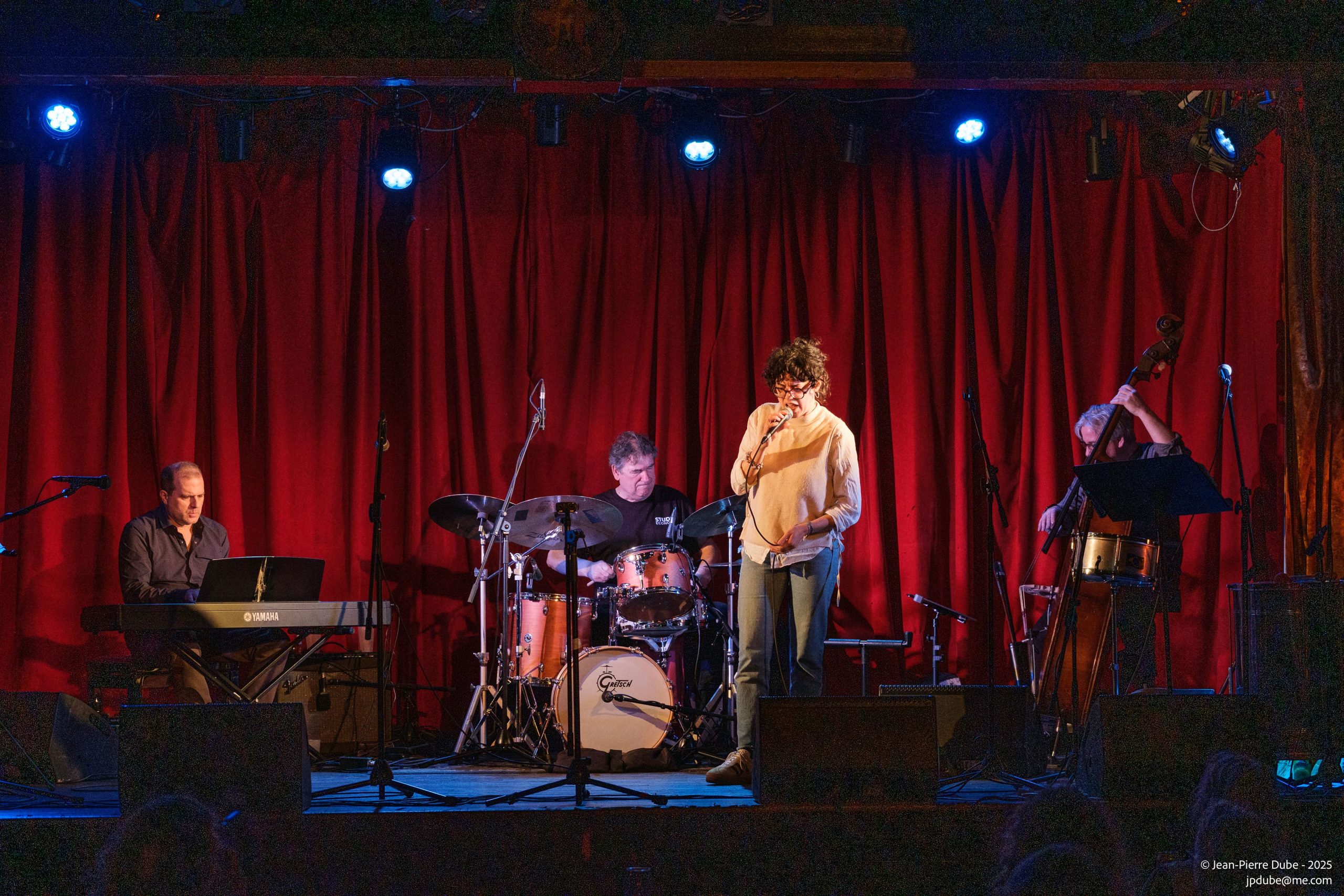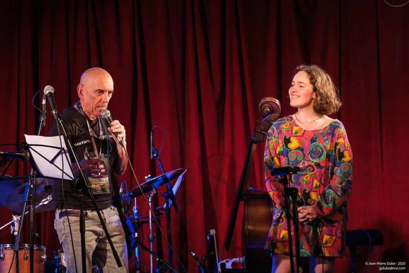 Notre collègue Charlotte Désilets (Charlotte à vu!) quant a elle nous a chanté un jolie Que Reste-il de Nos Amours. C’était ensuite au tour de mon homonyme Claude Arnold Thibault (SCAT CAT) de prendre la scène sur un Ornithology bien scatté comme il aime le faire avec le guitariste Ron Ledoux. Pour conclure ce 1e set c’était une belle relève avec Ariane Racicot au piano, Eli Lajoie et Maude Fortier aux saxophones, Antoine Rochefort à la basse et Ryan Bennett à la batterie sur Recorda Me. On est heureux !
