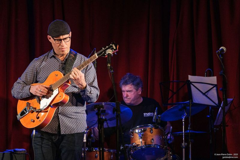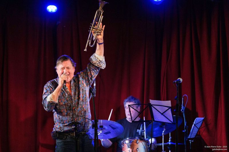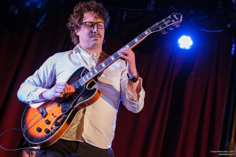 Avec un house band composé de Pierre François au piano, Frédéric Alarie à la contrebasse et Camil Bélisle la première partie du 3e party de sortiesjazznights.com lançait le bal sur Windows et Watermelon Man avec le flûtiste François Richard, suivi du saxophoniste Gabriel Genest avec le guitariste Oli Astral (Olivier Grenier-Bédard) sur I’ll Be Seeing You. On a ensuite eu droit a deux pièces du trompettiste Roger Walls avec le pianiste Julian Gutierrez Vinardell en mode Cab Calloway, quel showman ! Et ensuite du Tchin-Tchin Trio avec votre humble serviteur au micro, Samuel Bonnet à la guitare ainsi que Claude « Chap » Chapleau à la guitare sur un Fragile (Sting) bien senti.
