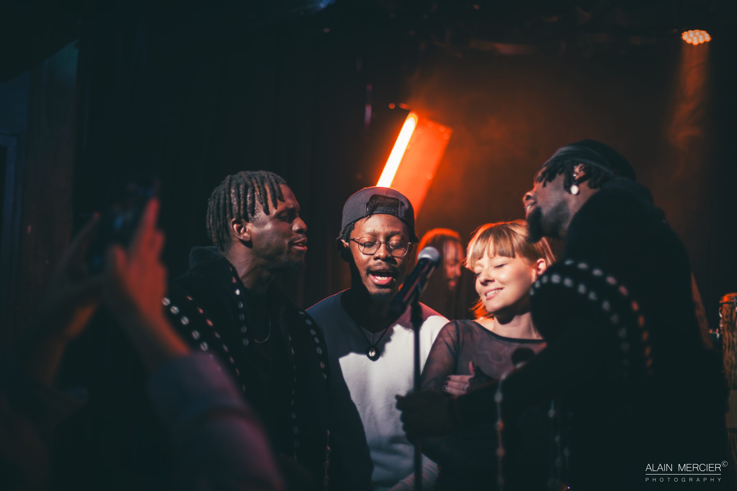 Medina s’enchaîne, évoquant le voyage éternel et les racines mêlées des enfants d’ici et d’ailleurs dont le devoir est de maintenir le cap. Hortense, Hendry Massamba, Floric Kim et Kethab formèrent un chœur tendre, soutenant la basse majestueuse d’Étienne Dextraze, dans un élan à la Pino Palladino. Les ngomas d’Elli embrasèrent la scène d’un feu dansant.