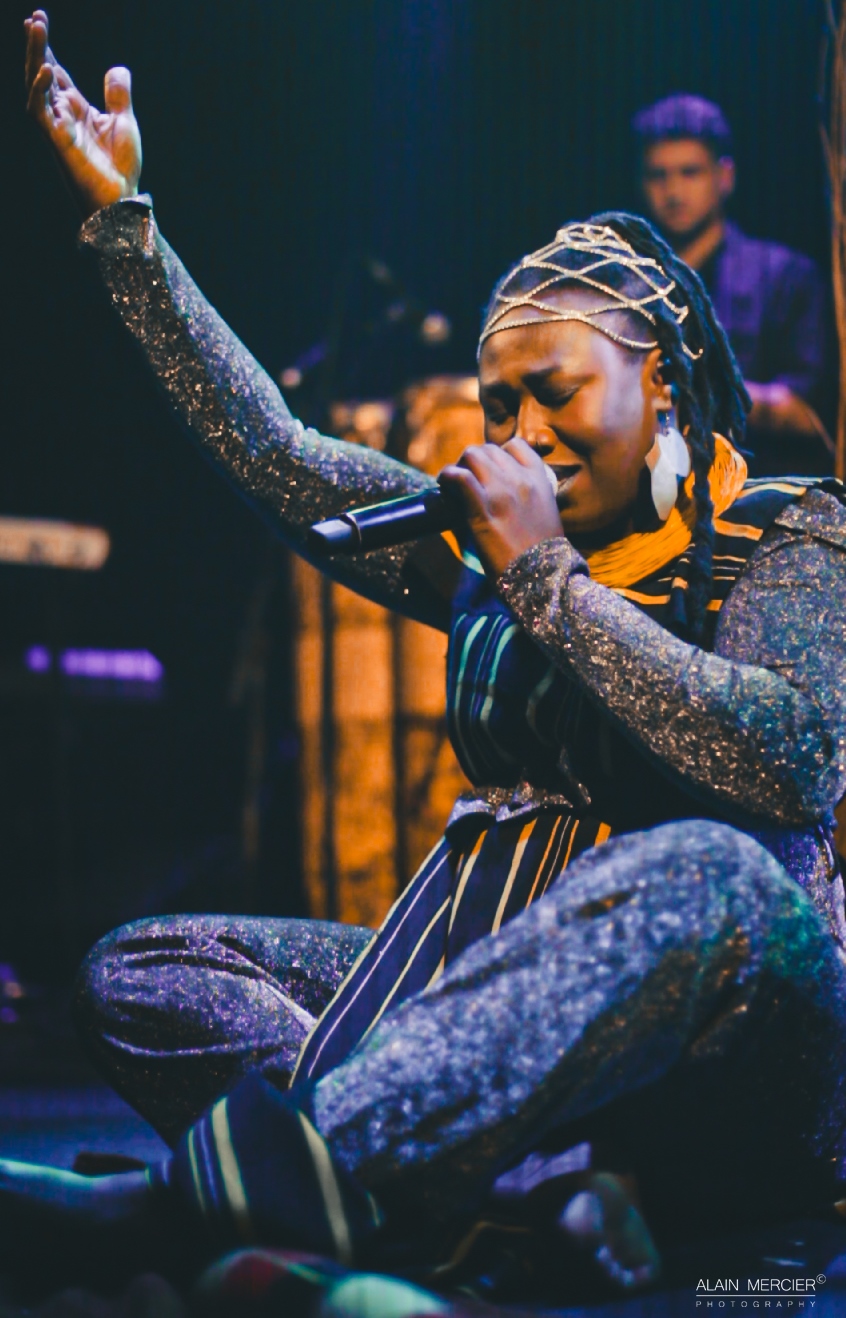 L’énergie monta d’un cran avec Adamah, désignant la Terre. Les ngomas d’Elli Miller-Maboungou et la batterie de Dogbo s’unirent en un dialogue tellurique, célébrant la force du sol natal. Puis, dans un souffle mystique, Siguî fit monter la grande griotte Djely Tapa sur scène. Sa voix secouant les âmes, invoquant les importantes retrouvailles de soi. Alex Francoeur (The Liquor Store), saxophoniste métamorphosé en guitariste, ajouta sa touche inédite, comme un vent nouveau dans cette odyssée. Nous avons été ravis d’être témoins de sa toute première à la guitare.