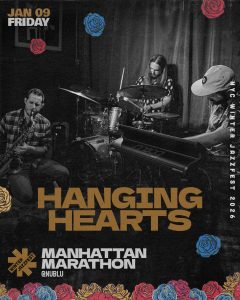Enraciné dans la riche tradition jazz avant-gardiste et expérimentale de Chicago, Hanging Hearts est un trio progressif qui excelle à la croisée de l’énergie, du groove et de l’improvisation. Mené par le saxophoniste Chris Weller et composé de Cole DeGenova aux claviers et à la basse synthétisée, ainsi que de Quin Kirchner à la batterie, le groupe puise son inspiration dans l’histoire d’innovation musicale de la ville. Fusionnant jazz et rock intense, textures électroniques et sensibilité avant-gardiste, Hanging Hearts incarne l’esprit de décloisonnement des genres qui caractérise depuis longtemps la scène musicale créative de Chicago.