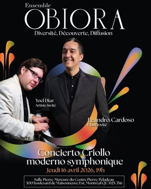 Créée spécialement pour l’Ensemble Obiora, cette version symphonique inédite marie avec brio l’énergie des sonorités cubaines et la richesse de l’écriture orchestrale. Pour l’occasion, Yoel Diaz Avila de cette première du Concierto Criollo moderno symphonique (concert créole moderne symphonique) sera accompagné de son quatuor de jazz cubain, offrant un dialogue vibrant entre rythmes populaires et textures symphoniques.